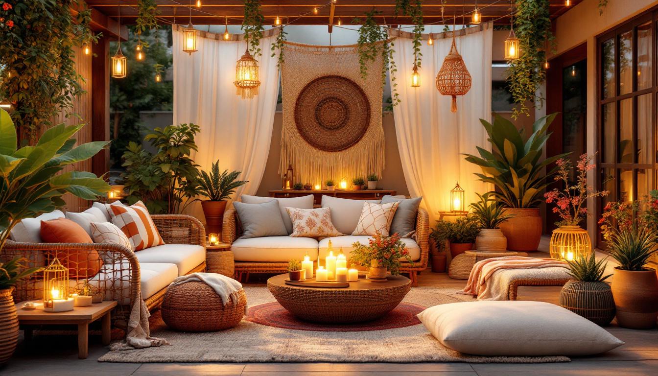 Le mobilier en rotin, accompagné de coussins colorés et de tapis ethniques, convient parfaitement à une ambiance bohème chic.